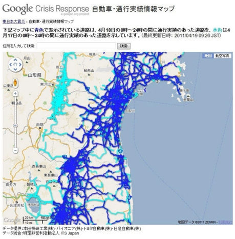 “探針”是汽車物聯(lián)網(wǎng)的重要技術(shù)之一,此前本田已經(jīng)提供了稱為“網(wǎng)上導(dǎo)航”的獨(dú)自服務(wù)。日本ITS協(xié)會希望推動(dòng)探針技術(shù)的通用化,但是廠商之間存在競爭關(guān)系,難以協(xié)同一致。本次,在通行圖上,本田、先鋒、豐田、日產(chǎn)汽車都提供了信息,實(shí)現(xiàn)了共享信息,對救災(zāi)物資運(yùn)輸?shù)穆窙r信息提供了有益參考,“地震時(shí)方顯汽車物聯(lián)網(wǎng)的價(jià)值”(八木浩一)。