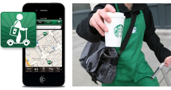 據(jù)介紹,這是一款地理位置應(yīng)用。用戶只需在應(yīng)用中為自己所處的位置添加標記,并選擇咖啡種類,很快就會有星巴克店員騎著踏板車,將一杯咖啡送到消費者手中。