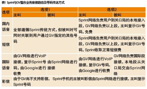 選項(xiàng)2中,話音和短信業(yè)務(wù)都交由GV網(wǎng)絡(luò)進(jìn)行接續(xù),Sprint只負(fù)責(zé)用戶到關(guān)口局的本地接入段,這時(shí)候使用的是GV的VoIP業(yè)務(wù)。因此,選項(xiàng)2才可以稱得上是深度整合;同時(shí),由于GV使用的是固網(wǎng)碼號,雙方的整合其實(shí)已經(jīng)屬于FMC的范疇了。表1是對上述兩種方式的具體分析。