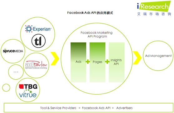 iResearch艾瑞咨詢整理Insidefacebook最新行業(yè)動(dòng)態(tài)時(shí)發(fā)現(xiàn),F(xiàn)acebook于2011年8月1日正式宣布開放廣告接口(Ads API)應(yīng)用服務(wù),通過在該接口上投放第三方的高效廣告管理工具,廣告主甚至可以保證數(shù)百萬的復(fù)雜媒體營銷計(jì)劃正常運(yùn)營并實(shí)現(xiàn)廣告管理的高效優(yōu)化。到目前為止,F(xiàn)acebook只為少數(shù)有限的第三方廣告管理工具供應(yīng)商提供了準(zhǔn)入接口,包括Techlightenment(近日被Experian收購)、TBG Digital(與Vitrue達(dá)成協(xié)作)、Spruce Media、AdParlor等。此外,F(xiàn)acebook也建立了廣告接口營銷項(xiàng)目計(jì)劃,通過收取廣告、頁面、廣告接口洞察等相關(guān)費(fèi)用來實(shí)現(xiàn)盈利。隨著更多的第三方工具與服務(wù)供應(yīng)商進(jìn)入Ads API市場,越來越多的當(dāng)?shù)匦⌒蛷V告主也有望享受低成本的廣告優(yōu)化管理服務(wù)。