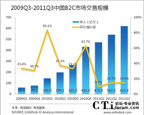 易觀智庫:2011年第3季度中國B2C整體市場增長乏力