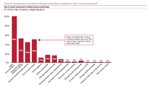 在用戶認為最重要的移動活動中,尋找本地位置位于基本通信功能、新聞閱讀之后,而且超過56%的用戶每周至少會使用手機一次查找位置信息