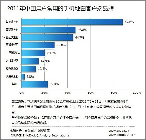 EnfoDesk易觀智庫研究發(fā)現(xiàn):進入2011年下半年以來,手機地圖市場發(fā)展有以下幾方面趨勢: