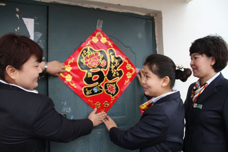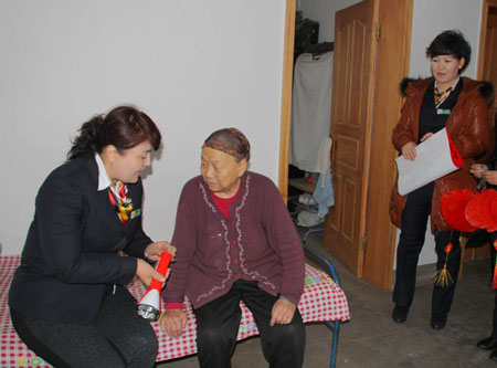 “阿姨,春節(jié)快到了,我們來(lái)看看您,前兩天已經(jīng)幫您把電充上了,這次給您帶了個(gè)手電,用著它以后到地下室可以照個(gè)亮。”隊(duì)長(zhǎng)阿依古麗向丁阿姨說(shuō)明來(lái)意,還跟丁阿姨試了試,手電是充電式的,不用換電池,丁阿姨挺高興的。臨走時(shí),阿依古麗還在她家門上貼了個(gè)大紅的“!弊,祝福老人家新年快樂(lè)。