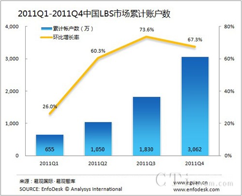 2011Q4中國LBS應用規(guī)模突破3000萬
