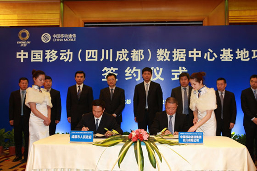2012年2月22日,中國移動(dòng)(四川成都)數(shù)據(jù)中心基地項(xiàng)目在四川成都正式簽約啟動(dòng)。成都市政府葛紅林市長(zhǎng)、劉超常委、白剛副市長(zhǎng)與中國移動(dòng)通信集團(tuán)公司魯向東副總裁、中國移動(dòng)四川公司簡(jiǎn)勤總經(jīng)理等出席簽約儀式,成都市政府與中國移動(dòng)四川公司代表雙方簽署合作協(xié)議。