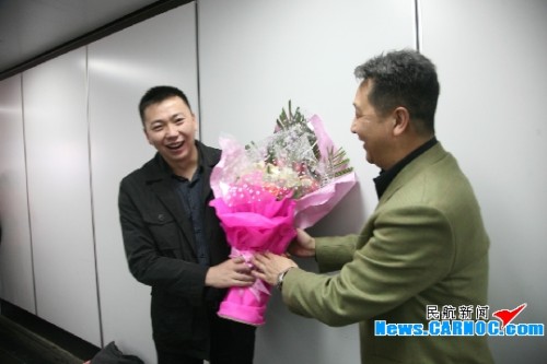 圖1:南航新疆分公司市場銷售部領(lǐng)導(dǎo)迎接“南航優(yōu)秀青年勞務(wù)工”李江濤載譽歸來