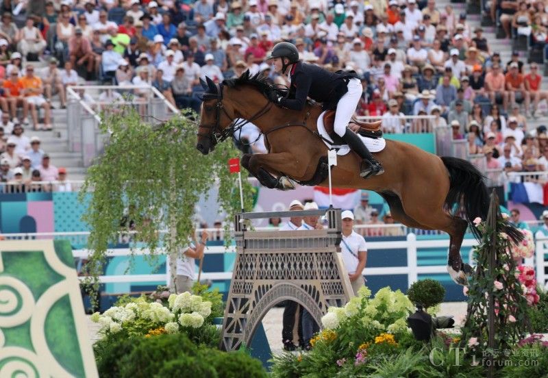 8月2日,英國隊選手查爾斯在比賽中。當日,在巴黎奧運會馬術(shù)團體場地障礙大獎賽決賽中,英國隊奪得金牌。新華社記者 楊磊 攝