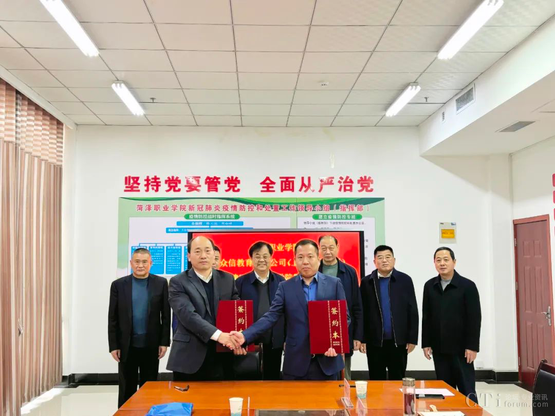 出席本次簽約儀式的有仁聯(lián)集團副總裁王杰,仁聯(lián)集團全資控股企業(yè)——山東眾信教育總經(jīng)理王偉,副總經(jīng)理王孟景,菏澤職業(yè)學院黨委副書記、院長袁宗建,學校黨委副書記胡憲奎,學校黨委委員、副院長王朝景等。