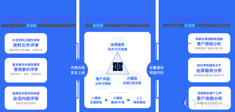 依托多項(xiàng)AI能力融合應(yīng)用,升級(jí)后的【多模態(tài)合規(guī)分析平臺(tái)】能處理對(duì)話數(shù)據(jù)、圖片、音頻和視頻等各種格式的信息,同時(shí)采用大小模型組合式AI合規(guī)檢查機(jī)制,對(duì)各個(gè)渠道的客戶互動(dòng)數(shù)據(jù)進(jìn)行聚合分析,實(shí)現(xiàn)大模型構(gòu)成坐席和客戶間全場(chǎng)景多模態(tài)數(shù)據(jù)檢測(cè)與分析,以及客戶體驗(yàn)升級(jí)。