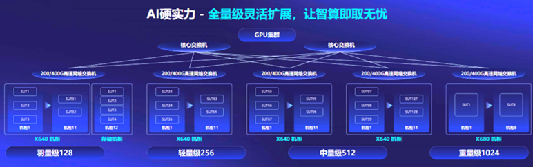 隨著算力成為稀缺資源,寧暢從客戶角度出發(fā),提供了“先享后付”的算力購買方案。目前,寧暢AI算力棧已開放免費試用,現(xiàn)已有50+用戶預約試用。該算力棧是一個包括128臺GPU服務(wù)器的千卡級別算力集群,標準化智算中心建設(shè)方案囊括了羽量級128、輕量級256、中量級512、重量級1024四個等級,實現(xiàn)全量級靈活擴展,給了用戶極大選擇空間。用戶可在試用中嘗試不同的業(yè)務(wù)組合、方案框架,以便找到“最優(yōu)性價比”的智算中心建設(shè)方案。
