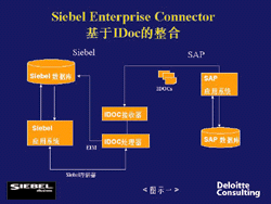 如果在CRM設計中就充分考慮到了哪些數(shù)據(jù)需要不斷和ERP進行同步更新,上述麻煩就會大大減少。這也是為什么像Siebel這樣的行業(yè)領先的前端辦公軟件開始提供與SAPR/33.1以上版本的ERP進行完全兼容的中間軟件(middle ware)。