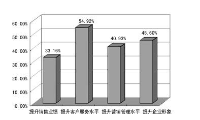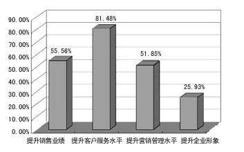 從結(jié)果上看,企業(yè)實(shí)施的最大動(dòng)力是“提升客戶服務(wù)水平”。這說明,企業(yè)對(duì)CRM的理解還僅僅停留在初級(jí)階段,尚沒有充分認(rèn)識(shí)到對(duì)企業(yè)提升銷售業(yè)績、營銷管理水平有著重要作用。這其實(shí)也反應(yīng)了我國企業(yè)目前的管理水平。