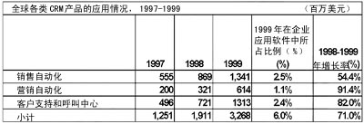 圖1 全球CRM市場回顧(1997年至1999年)