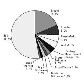 就CRM的廠商來講,市場份額比較分散,而且競爭態(tài)勢變化很快。實(shí)際上,除了前五名的廠商外,其它廠商的市場份額不超過2%,其中大多數(shù)CRM廠商是在過去18個(gè)月才推出CRM產(chǎn)品。