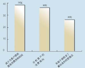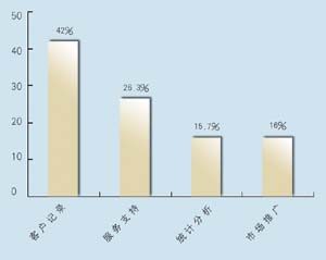 關(guān)于所應(yīng)用的CRM類(lèi)型,有5家是呼叫中心,5家是分析型,7家是運(yùn)營(yíng)型,2家是屬于大型企業(yè)CRM。其中13家擁有動(dòng)態(tài)客戶(hù)數(shù)據(jù)庫(kù),占到68.4%。這其中又有42%利用數(shù)據(jù)庫(kù)作客戶(hù)記錄,26.3%作為客戶(hù)支持使用,15.7%用作統(tǒng)計(jì)分析,另有16%作為市場(chǎng)推廣。保險(xiǎn)公司與客戶(hù)聯(lián)系的方式,從重要性來(lái)看依次為:面對(duì)面\電話(huà)\網(wǎng)絡(luò)\傳真,這說(shuō)明保險(xiǎn)公司對(duì)于與客戶(hù)進(jìn)行人性化交流的重視。在問(wèn)到CRM的主要作用時(shí),有5家表示使用CRM有助于保險(xiǎn)業(yè)了解自身的經(jīng)營(yíng)情況,幫助公司準(zhǔn)確地發(fā)現(xiàn)贏利客戶(hù)和具有贏利潛力的客戶(hù),有7家認(rèn)為使用CRM有助于分析客戶(hù)的消費(fèi)傾向,有7家認(rèn)為使用CRM有助于優(yōu)化信息和資源管理。在問(wèn)到是否愿意為像CRM系統(tǒng)這樣的咨詢(xún)或服務(wù)付費(fèi)時(shí),有11家表示愿意,占到57.8%。