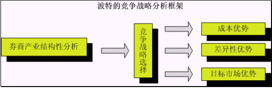 上圖為利用哈佛著名教授邁克爾o波特的競爭戰(zhàn)略分析框架來分析證券營業(yè)部的競爭戰(zhàn)略。由于此文的著眼點(diǎn)是以證券營業(yè)部為中心的產(chǎn)業(yè),也就是證券公司的經(jīng)紀(jì)業(yè)務(wù)產(chǎn)業(yè),而證券公司的其他金融服務(wù)項(xiàng)目如投資、自營等業(yè)務(wù)不在本文討論的范疇。