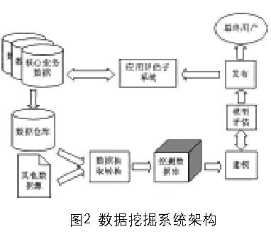 規(guī)則生成子系統(tǒng)主要完成根據(jù)數(shù)據(jù)倉庫提供的保單歷史數(shù)據(jù),統(tǒng)計并產(chǎn)生相關規(guī)律,并輸出相關結果。具體包括數(shù)據(jù)抽取轉換、挖掘數(shù)據(jù)庫建立、建模(其中包括了參數(shù)設置)、模型評估、結果發(fā)布。發(fā)布的對象是高層決策者,同時將模型提交給應用評估子系統(tǒng).根據(jù)效果每月動態(tài)生成新的模型。
