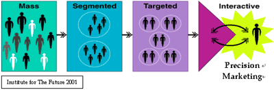 首先,互聯(lián)網(wǎng)的出現(xiàn)改變了營(yíng)銷的概念,為大規(guī)模定制創(chuàng)造了空前的機(jī)遇。隨著富裕而又有辨別能力的中產(chǎn)階級(jí)的逐漸壯大,預(yù)先營(yíng)銷的期望以及針對(duì)個(gè)人的解決方案日益成為一種標(biāo)準(zhǔn)。從記住他們的行為&偏好并為他們發(fā)送相關(guān)產(chǎn)品信息 (例如Amazon.com) …到幫助他們得到自己理想中的產(chǎn)品 (例如Dell.com,) ,CRM觀念的關(guān)鍵之處就在于為客戶提供符合他們需求的產(chǎn)品/服務(wù)而不是向他們推銷你的東西;ヂ(lián)網(wǎng)使你能夠與客戶建立學(xué)習(xí)關(guān)系,從銷售轉(zhuǎn)移到解決問題。互聯(lián)網(wǎng)上的CRM已經(jīng)上升到了另一個(gè)高度。