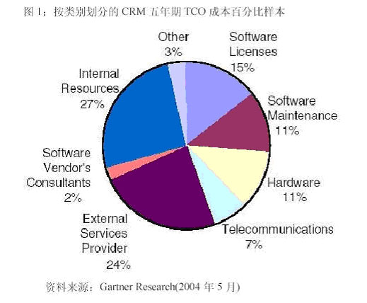 直到2008 年,那些只完成了一兩年期限CRM TCO 模型的企業(yè)將會把其CRM 方案的成本費低估35%-65%(80%的可能性)。直到2008 年,那些沒有采取一項整體方法來確定CRM TCO 的企業(yè)將會使其CRM 預算超支35%-65%(80%的可能性)。直到2006 年,那些創(chuàng)建了一個準確的TCO 模型用來引導CRM 項目決策的項目主管將會把其成功的機會提高30%(80%的可能性)。我們最近對251 家企業(yè)的CRM 行動進行了復審,其結(jié)果顯示其中有71%的企業(yè)聲稱已完成了TCO 評估,有60%的企業(yè)只計算了一兩年的TCO。大多數(shù)企業(yè)都沒有說明其CRM 行動中的所有成本,因此它們就面臨著預算過低這種風險。