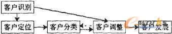筆者認為,客戶識別是貫穿整個客戶關(guān)系管理運作流程的一條主線,也是企業(yè)判斷是否進行以及如何進行客戶獲取、客戶保持、關(guān)系終止活動的根本依據(jù)。這里筆者把客戶識別可以分為定位客戶、客戶分類、調(diào)整客戶和發(fā)展客戶幾個步驟(見圖1)。