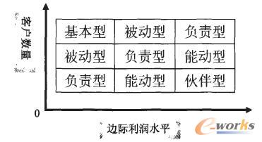 這5種類型之間并不具有簡單的優(yōu)劣對比或順序,因為企業(yè)所采用的客戶關(guān)系類型取決它的產(chǎn)品以及客戶的特征,不同企業(yè)甚至同一企業(yè)在對待不同客戶時,都有可能采用不同的客戶類型。一家生產(chǎn)日用化妝品的企業(yè),與它的化妝品消費者個人之間常會建立一種被動型的客戶關(guān)系,企業(yè)設(shè)立的客戶服務(wù)機構(gòu)或聯(lián)絡(luò)中心將聽取客戶的意見,處理客戶投訴以及改進產(chǎn)品;但這家企業(yè)同大型超市或零售企業(yè),同連鎖的美容產(chǎn)業(yè)機構(gòu)之間,常可能建立一種伙伴型的客戶關(guān)系,實現(xiàn)產(chǎn)銷企業(yè)之間的互惠互利?铺乩仗岢觯髽I(yè)可以根據(jù)其客戶的數(shù)量以及產(chǎn)品的邊際利潤水平,根據(jù)圖3指示的思路,選擇合適的客戶關(guān)系類型。