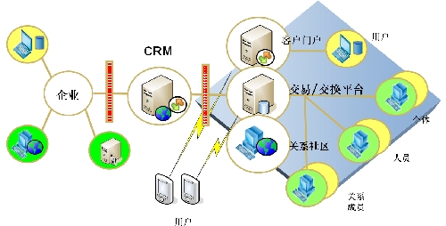 企業(yè)的社區(qū)營銷架構(gòu)不僅僅是在構(gòu)建一個網(wǎng)絡(luò)社區(qū),而是圍繞企業(yè)的應用充分結(jié)合起來,包括企業(yè)的CRM系統(tǒng)、消費者門戶、社區(qū)以及交易交換平臺等。如圖所示: