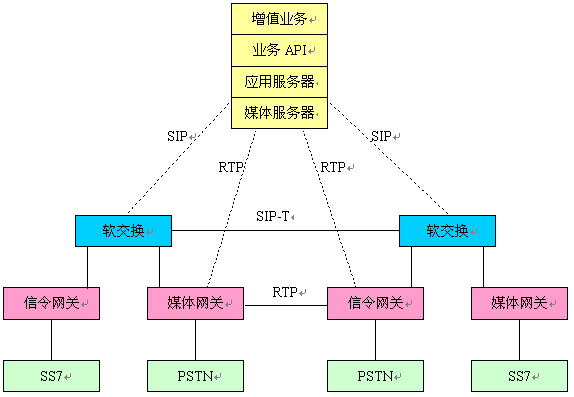 應(yīng)用服務(wù)器和軟交換間用SIP協(xié)議進行通信,而SIP是用于創(chuàng)建,修改和終止呼叫的應(yīng)用層控制(信令)協(xié)議,這樣,使得應(yīng)用服務(wù)器可以涉入呼叫的控制方面,但不能對媒體資源作出控制,而媒體服務(wù)器則可提供這方面的功能,讓媒體服務(wù)器與應(yīng)用服務(wù)器相配合,就可讓應(yīng)用服務(wù)器處理呼叫的信令方面(SIP),而媒體服務(wù)器負責處理媒體流(RTP),這樣就可支持那些需要控制媒體流的業(yè)務(wù),如IVR﹑會議﹑傳真﹑媒體混合等。當然,如果業(yè)務(wù)不需要對媒體的控制功能,如編號轉(zhuǎn)換﹑轉(zhuǎn)發(fā)﹑路由相關(guān)業(yè)務(wù)等,那么這些業(yè)務(wù)僅用應(yīng)用服務(wù)器就能支持。另外,由于媒體網(wǎng)關(guān)具備媒體服務(wù)器的一部分或所有的功能,隨著SIP協(xié)議的進一步擴展,應(yīng)用服務(wù)器則可以通過軟交換從媒體網(wǎng)關(guān)那里獲得一些媒體功能,即應(yīng)用服務(wù)器分配一定的媒體相關(guān)功能在媒體網(wǎng)關(guān)上實現(xiàn),這樣可以減輕應(yīng)用服務(wù)器上的媒體功能,進一步降低增值業(yè)務(wù)使用的成本。關(guān)于應(yīng)用服務(wù)器和媒體服務(wù)器間的接口目前尚處于討論階段,有待于進一步確定。
