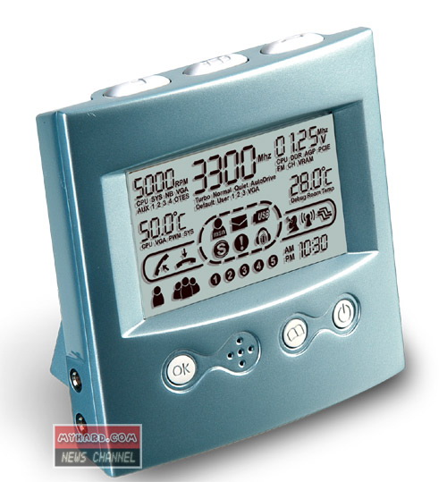 這個裝置,其實是一項早期工具的衍生產(chǎn)品。早在2004年,這個具有獨立顯示屏的小東西被開發(fā)出來,用以控制電腦的超頻設(shè)定并監(jiān)控系統(tǒng)的效能,F(xiàn)在這個在下周起于各大通路都買得到的新機種已納入Skype話務管理功能,使用者可直接把頭戴式耳機接到這個小時鐘上,one-touch輕輕一按,便可立即進行接通電話、速簡撥號及電話會議。