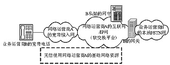 其次,目前國內(nèi)VoIP的運作模式,在VoIP運作模式中涉及到網(wǎng)絡運營商和業(yè)務運營商。我們用下面的例子來具體說明該問題。假定在某地,在其他運營商服務區(qū)域內(nèi)沒有本地網(wǎng)資源的業(yè)務運營商B利用該服務區(qū)內(nèi)擁有本地網(wǎng)資源和互聯(lián)網(wǎng)資源的網(wǎng)絡運營商A的ADSL寬帶接入到A的公眾互聯(lián)網(wǎng)上,在該網(wǎng)上,業(yè)務運營商B通過非法架設網(wǎng)守(計費控制系統(tǒng))及網(wǎng)關(guān)等設備開展VoIP業(yè)務,然后在自己服務區(qū)域內(nèi)的PSTN網(wǎng)絡上進行“落地”,這樣則直接旁路了網(wǎng)絡運營商A的電話語音業(yè)務,而網(wǎng)絡運營商A自己建設維護的互聯(lián)網(wǎng)則沒有得到任何補償,于是只能采用技術(shù)跟蹤然后封堵的方式來遏止業(yè)務運營商B的VoIP業(yè)務開展。在該情況下,業(yè)務運營商B的VoIP業(yè)務很難做大,而網(wǎng)絡運營商A也可以明正言順的進行封堵政策。最終受到損害的將會是整個VoIP產(chǎn)業(yè)(圖1)。因此,從成本和公平角度來說,必須對建設維護互聯(lián)網(wǎng)的網(wǎng)絡運營商A進行一定的補償,使其有足夠的激勵去讓VoIP業(yè)務提供商利用其網(wǎng)絡開展業(yè)務。也就是說必須建立VoIP承載網(wǎng)運營商和VoIP業(yè)務運營商之間的結(jié)算體系!
