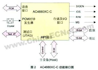 作為本系統(tǒng)中的核心部分,語音處理采用以色列audiocodes公司生產(chǎn)的專用多通道語音處理芯片ac4880xc-c。它具有以下特點: