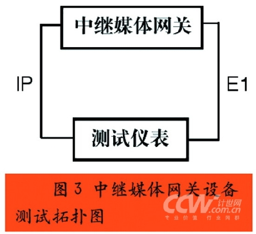 我國通信行業(yè)國家標準《IP中繼媒體網關設備測試方法》中明確了中繼媒體網關十個大項的測試,分別是基本功能測試、接口測試、協議測試、通信流程測試、網管功能測試、性能測試、可靠性測試、網同步測試、常規(guī)測試和環(huán)境測試。按照圖3所示的測試拓撲圖進行連接,使用測試儀表仿真軟交換、綜合接入設備和程控交換機,就可以按照測試方法中的測項要求,逐一得出測試結果。