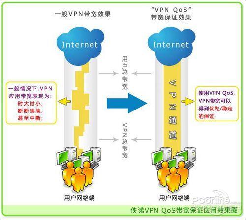 俠諾的VPN QoS,即能深入“大水管中的小水管”,將QoS帶寬管理的理念引入到VPN通道中,可謂是一個實用的技術創(chuàng)新,它可針對每一種VPN通道中的應用設定最高可使用帶寬,這樣一來就可以防制某些VPN應用大量占用單一VPN通道整體帶寬,全面保障每項VPN應用可使用的帶寬,解決單一通道下,VPN應用帶寬分配不均的問題。