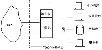 由于大多數(shù)“200”業(yè)務(wù)平臺(tái)采用的是上控機(jī)及語(yǔ)音卡系統(tǒng)(見(jiàn)圖1所示),由語(yǔ)音卡完成語(yǔ)音提示及交換處理,整體話務(wù)處理能力差,不太適合大中城市使用;另外其語(yǔ)音提示是經(jīng)過(guò)語(yǔ)音卡壓縮記錄在硬盤(pán)上,放音時(shí)經(jīng)讀盤(pán)、解壓恢復(fù)成語(yǔ)音信號(hào),處理速度慢,交換占用總線資源,在話務(wù)量大時(shí),易出現(xiàn)阻塞現(xiàn)象,并將影響現(xiàn)有的“200”業(yè)務(wù)。