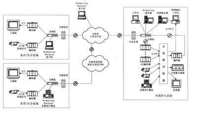 由于政府部門所跨的地域較廣,彼此之間的距離較遠(yuǎn),而且各級政府部門的會議較多,因此,利用修建好的信息高速公路建立一個(gè)基于IP網(wǎng)絡(luò)的視像會議系統(tǒng)具有一定的實(shí)用價(jià)值。這種系統(tǒng)既可以提高政府部門的辦公效率以及政府專用網(wǎng)絡(luò)的利用率,又可以節(jié)省政府部門的會議費(fèi)用。以下介紹在IP寬帶網(wǎng)上構(gòu)建電視電話會議系統(tǒng)解決方案。