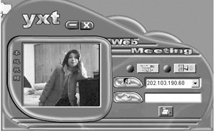 視頻目錄服務(wù)器的IP地址已在主界面中顯示,如“202.103.190.60”。你只需點擊前面有兩個人頭像的“連接目錄服務(wù)器”按鈕,就可以登錄視頻目錄服務(wù)器。這時你可看到所有登錄者的信息。如果你想同哪位朋友聊天,你可用鼠標(biāo)雙擊你想與之聊天的朋友的信息,WebMeeting會馬上為你進行聯(lián)系,接通后響起一陣電話鈴聲并會彈出一個名為“遠程視頻”的窗口,對方的視頻畫面會顯示在其中。用它來跟千里之外的朋友進行溝通真是方便,筆者就嘗試用它來進行QQ朋友“相面”;舉行遠程朋友聚會;親身示范教別人學(xué)習(xí)電腦使用及解決電腦故障;了解異地商品優(yōu)劣;欣賞異地風(fēng)光(將攝像頭對準(zhǔn)大街);甚至還可來個重要事件現(xiàn)場直播等等。