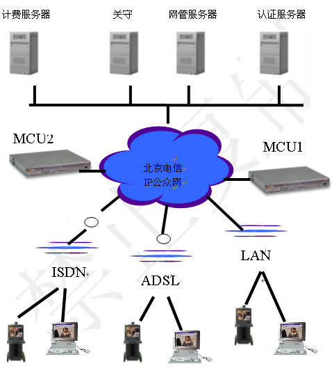 H.323協(xié)議的視訊平臺包括兩個(gè)層面:視訊交換網(wǎng)絡(luò)和運(yùn)營支撐網(wǎng)絡(luò)。視訊交換網(wǎng)絡(luò)包括MCU、Gatekeeper、Gateway、終端等。運(yùn)營支撐網(wǎng)絡(luò)包括網(wǎng)絡(luò)管理系統(tǒng)、認(rèn)證計(jì)費(fèi)系統(tǒng)、資源管理系統(tǒng)、會議控制系統(tǒng)、用戶管理系統(tǒng)、客戶服務(wù)系統(tǒng)等。