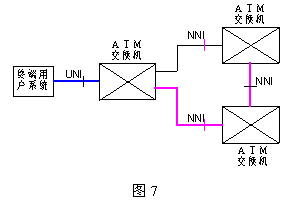 UNI和NNI ATM有兩種類型的接口:一種是用戶-網(wǎng)絡接口(UNI:User-Network Interface),一種是網(wǎng)絡-網(wǎng)絡接口(NNI:Network-Network Interface)。如下圖7所示。