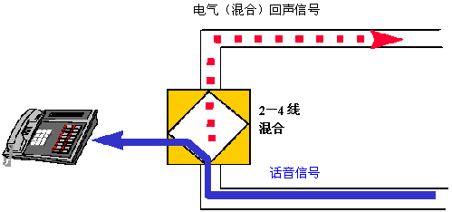 回聲消除器首先是在為長(zhǎng)途應(yīng)用而設(shè)計(jì)的網(wǎng)絡(luò)中引入的。長(zhǎng)途應(yīng)用中包含過(guò)量的傳播延遲,這種現(xiàn)象突顯出了將雙線連接轉(zhuǎn)換為四線系統(tǒng)的混合線路的不完整性。這種混合線路的不完整性被描述為"信號(hào)泄漏"或因阻抗失配而導(dǎo)致的信號(hào)反射,稱為網(wǎng)絡(luò)電氣回聲(也稱為混合回聲)。在圖1中,描述了這種現(xiàn)象。