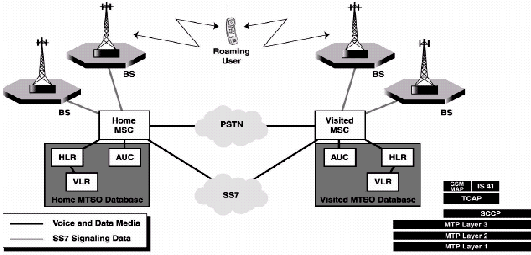 除了空中接口,在無線系統(tǒng)的設(shè)計(jì)中支持無線用戶的移動(dòng)性是主要的挑戰(zhàn)。無線系統(tǒng)對信令的要求明顯要比實(shí)現(xiàn)類似功能的地上有線系統(tǒng)要苛刻得多。結(jié)果使得無線網(wǎng)絡(luò)必須組合更先進(jìn)更全面的信令控制系統(tǒng)。即使移動(dòng)單元在它的歸屬網(wǎng)絡(luò)中,系統(tǒng)也要隨時(shí)跟蹤它的位置,因?yàn)楹羧搿⒄J(rèn)證和傳遞功能需要知道它當(dāng)前所處的位置。系統(tǒng)運(yùn)營商提供給用戶的移動(dòng)等級有越來越復(fù)雜的趨勢,這就要求在系統(tǒng)間必須應(yīng)用復(fù)雜的信令才足以支持漫游、登記和路由尋找等功能。這就是無線系統(tǒng)普遍選擇SS7作為信令協(xié)議的原因。