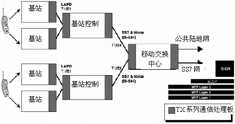 SS7也廣泛用作無線網(wǎng)和PSTN的接口信令,以及在不斷增加的無線網(wǎng)絡(luò)子系統(tǒng)之間。在GSM系統(tǒng)中,SS7還被用作基站控制中心(BSC)和移動(dòng)交換中心(MSC)之間的信令。