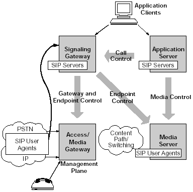 許多語音服務(wù)都是由媒體服務(wù)器提供的。例如,一個客戶給某個電子商務(wù)網(wǎng)站打電話會被接到一個自動語音應(yīng)答(IVR)上或者自動總機(jī)上。這些應(yīng)用使用了語音,語音識別和音頻等功能,都是運行在媒體服務(wù)器上的。在下一代網(wǎng)絡(luò)的實現(xiàn)中,媒體服務(wù)器就象是另一個電話(或者說,一個SIP的終端)。因此,他們可以享受和用戶一樣的SIP的優(yōu)點。