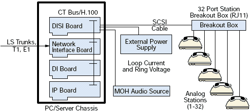 DISI16R2, DISI24R2, 和 DISI32R2 可以通過CTbus與其他集成的網(wǎng)絡(luò)接口和資源板卡連接構(gòu)成可擴(kuò)展的中繼和座席交換的配置. 這些板卡也與Dialogic的IP板卡兼容,可以被用來做VoIP應(yīng)用, 請(qǐng)參考圖1.