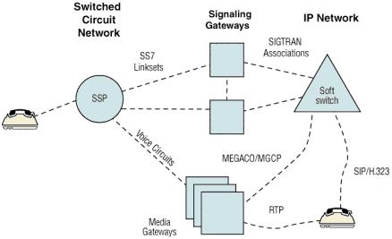 使用SG430信令網(wǎng)關(guān)來提供信令連接,就可以構(gòu)建一個(gè)分布式交換環(huán)境。這樣,信令網(wǎng)關(guān)、媒體網(wǎng)關(guān)和呼叫控制平臺(tái)就可以放在不同的地方,從而可以用分布式、可伸縮、且成本效益高的IP系統(tǒng)來取代龐大的交換機(jī)。