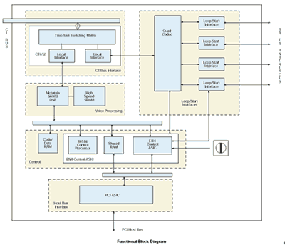 可下載的Spring Ware固件算法,由板內(nèi)DSP執(zhí)行,可以提供可變的24Kb/s到32Kb/s的ADPCM編碼方式和48Kb/s到64Kb/s的A率或u率PCM編碼方式,采樣速率和編碼方法可以分通道選擇。應用程序根據(jù)需要可以動態(tài)地改變采樣速率和編碼方式,以達到最優(yōu)的數(shù)據(jù)存儲和語音質(zhì)量。其他的編碼算法(象GSM和G..726)可以在支持VPIM標準的應用中使用。