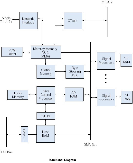 DMVF2401TIPCIU以及DMVF3001E1PCIU板卡將24個T-1或者30個E-1語音處理線和14400b/S(v.17)傳真功能進行了綁定,該傳真功能可以具有傳真機的所有基本功能,甚至更多,包括傳送和接收多個文件、輪詢功能、廣播功能以及重復輪詢。該種板卡采用了雙重處理器的結構,這種結構組合了DSP的信號處理功能和通用控制微處理器的策略決定、數(shù)據移動功能。板卡為以下資源提供了呼叫處理的能力:從電話網傳來的T-1或者E-1電話信號;共享通過CT