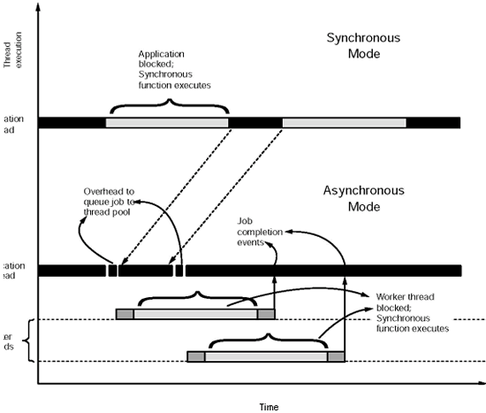 如前所述,使用額外的線程可以讓主應(yīng)用線程不必去等待同步函數(shù)的執(zhí)行。也就是說,應(yīng)用程序可以繼續(xù)處理它的邏輯,而不會被執(zhí)行中的同步函數(shù)阻塞。